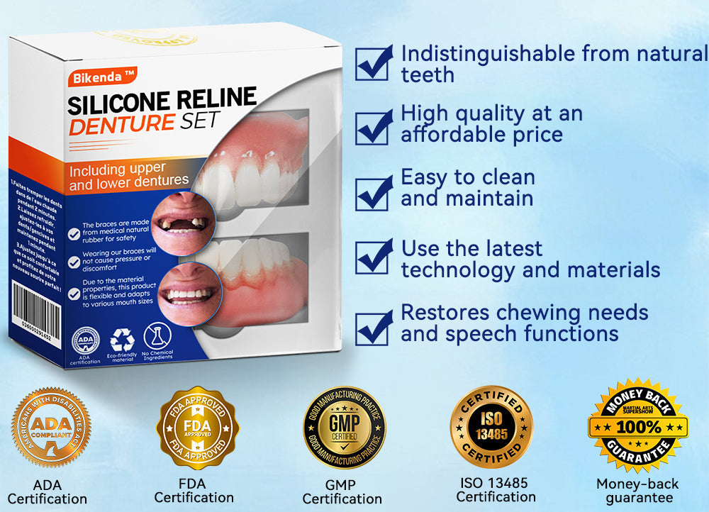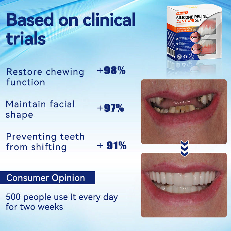 Чувствате ли се понякога несигурни относно усмивката си или кривите си зъби? Няма нужда да ходите на зъболекар за скъпо лечение! Комплектът за релайниране на протези Haimuzil™ Silicone Reline предлага рентабилно решение за постигане на перфектна усмивка.